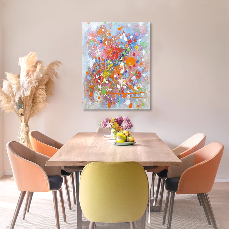 “Sinfonia Vitale 2” di 65cmx80cm, tecnica mista su tela. Per info scrivimi in privato o Whatsapp al 339 2693049 "Sinfonia vitale è un inno al movimento, al colore e all’impulso primordiale che attraversa ogni forma di vita. La tavolozza esplosiva, fatta di rossi incandescenti, verdi pulsanti e blu vibranti, evoca la musicalità del mondo naturale, dove ogni pennellata diventa una nota in un concerto di emozioni. L’opera richiama la libertà cromatica di Kandinsky e la gestualità istintiva di Pollock, ma conserva una voce personale, più solare e mediterranea, intrisa di energia positiva."#pittura #artecontemporanea #sinfonia #color #colori #arte #flowerlovers #fiori #flowers #arredamento #arredocasa #art #pittura #painting #arts #contemporaryart