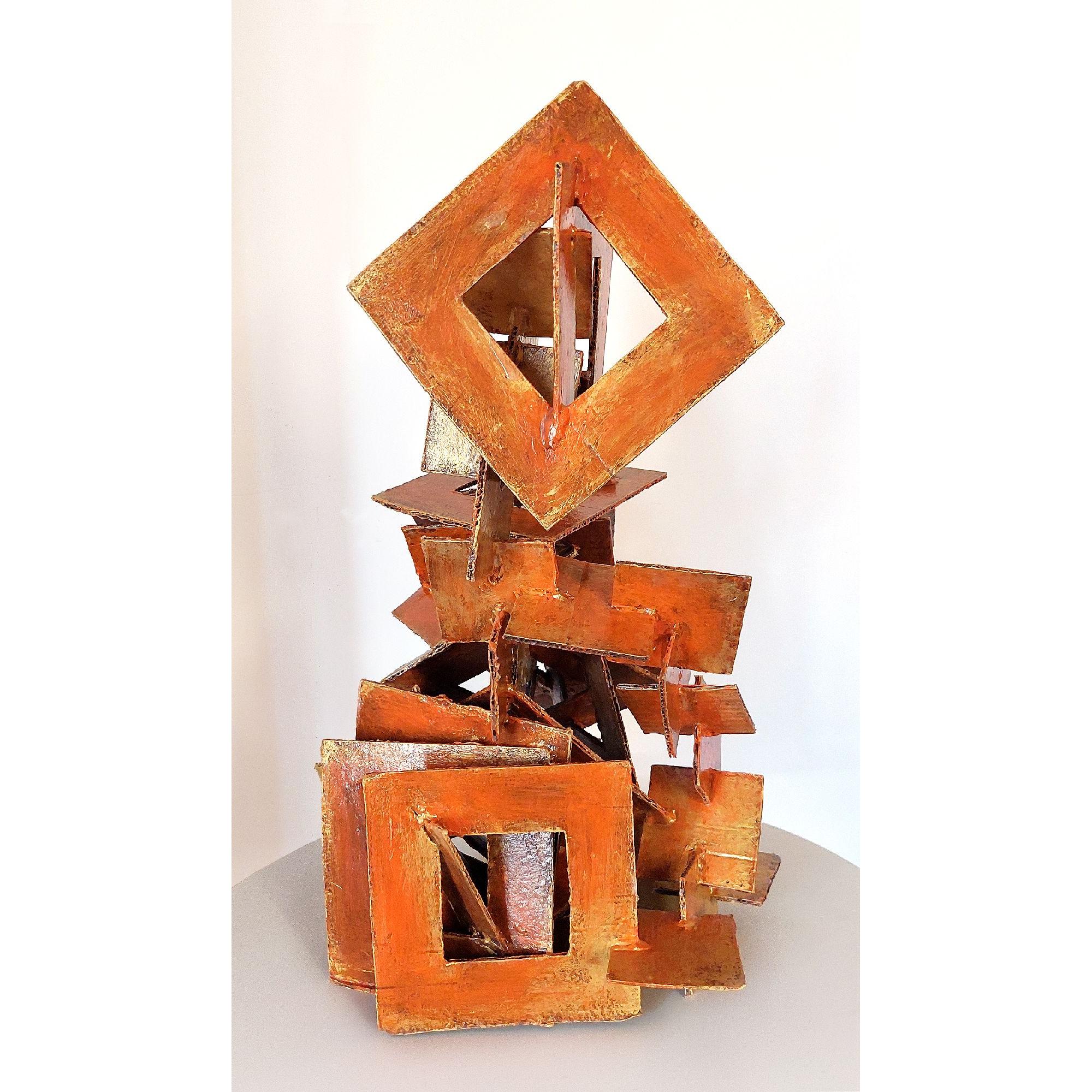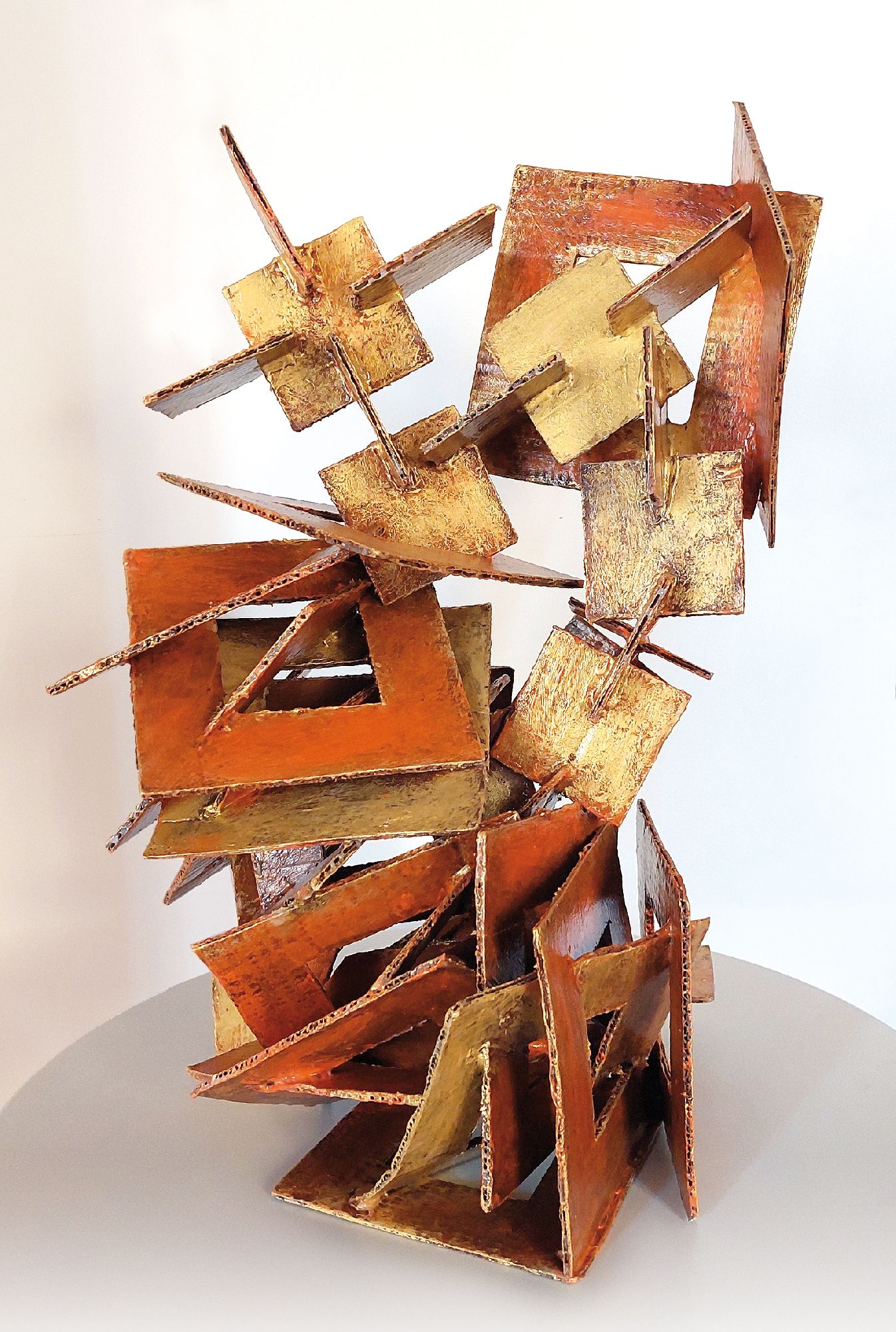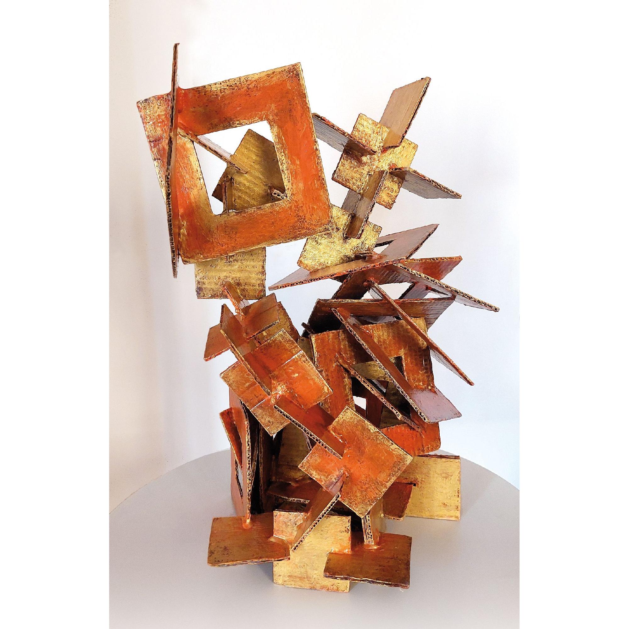"Equilibrio del Caos"Una scultura che sfida lo sguardo e la percezione, una composizione tridimensionale costruita interamente con cartone riciclato e dipinta a mano. L'opera si sviluppa verticalmente come una costruzione urbana spontanea, in cui forme quadrate e rettangolari si incastrano e si oppongono, creando una tensione dinamica tra ordine e disordine. Ogni elemento sembra sul punto di cadere, ma resta sospeso, in equilibrio, come a voler rappresentare l’instabilità della società contemporanea, sempre in bilico tra progresso e collasso.Roberta Recanatesi attinge alla tradizione del Costruttivismo russo, rievocando l’estetica razionalista e geometrica di Naum Gabo e Antoine Pevsner, ma ne reinventa la grammatica visiva con materiali poveri e un linguaggio più istintivo e post-industriale. La scelta del cartone - un materiale destinato alla dispersione e allo scarto - non è casuale: è un atto politico, ecologico ed estetico. Ogni strato pittorico, dai riflessi metallici ramati e dorati, amplifica la percezione plastica dell'opera, rendendo il fragile sorprendentemente solido."Equilibrio del Caos" non è soltanto una scultura: è una riflessione visiva sul nostro tempo, sulla fragilità delle strutture (fisiche, emotive, sociali) che ci sostengono e sul bisogno costante di reinventare un equilibrio possibile all'interno del caos"SculturaRicicloRiciclo Artistico CartoneArte#sculptures #Sculture #scultura #riciclocartone #Riciclo #sculturacontemporanea #oggettiarredo #geometria #riclicoartistico